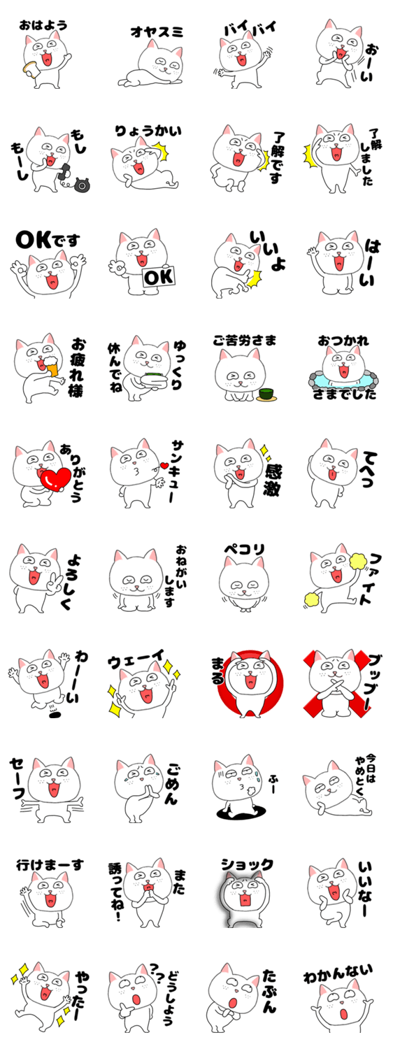 白ネコのあいうえお・・・ってるスタンプ