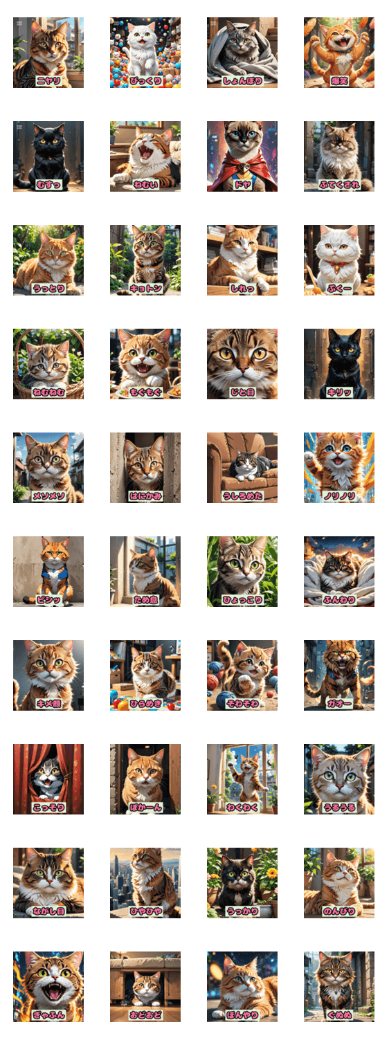 いかつい猫が、いろんな感情を表現!日常のトークやリアクション、友達との楽しい会話にぴったり!