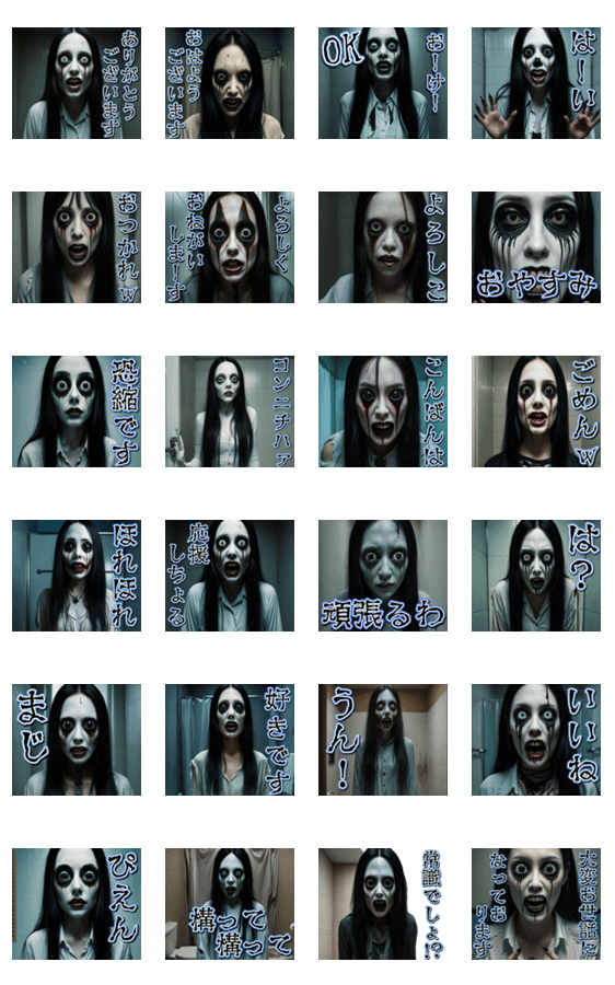 こちらは、挨拶の文字が入ったバージョンです。/うざい/びっくり/煽り/お化け/おばけ/ホラー/ネタ/面白い/ギャグ/怖い/キモ可愛い/メンヘラ/妖怪/ハロウィン/夏/怪談/グロ