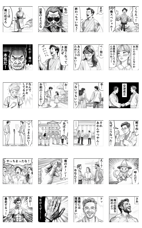 | スタンプ説明 | 普段の会話に使えそうな漫画っぽいセリフを集めてみました |