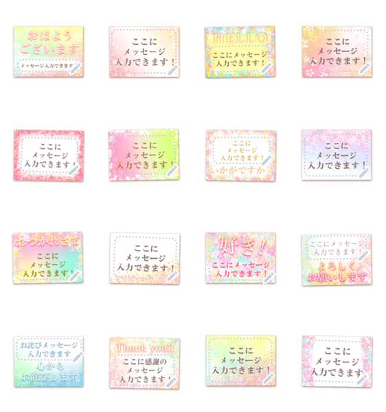 空欄に文字入力できる便利なカードフレーム♡ 挨拶や好きなどの文字つきもある華やかな桜の花びらが舞う春にぴったりなハガキ型のメッセージスタンプです♪ 現在この商品は一部のスマートフォン版LINE 10.3.0以上のトークルームでのみ使用できます。動作環境の最新情報はヘルプをご確認ください。