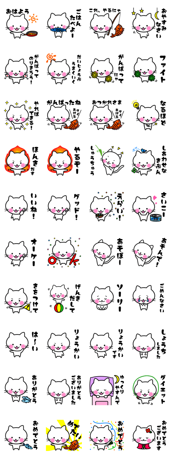 白ネコのあいうえお・・・ってるスタンプ