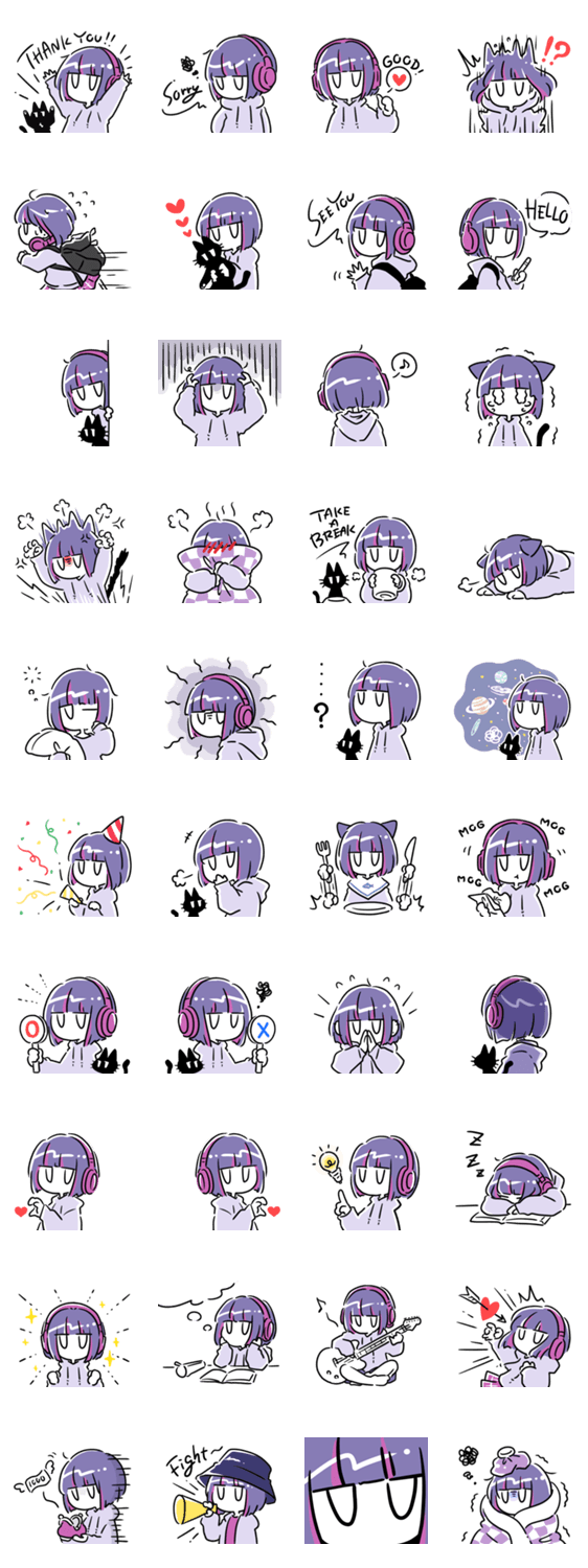 | スタンプ説明 | 人見知りでちょっと厨二病気味なシバタさんの日常スタンプ。常にジト目だけど表情豊か。ステッカーでは見せない一面をお楽しみください。from project未完成 |