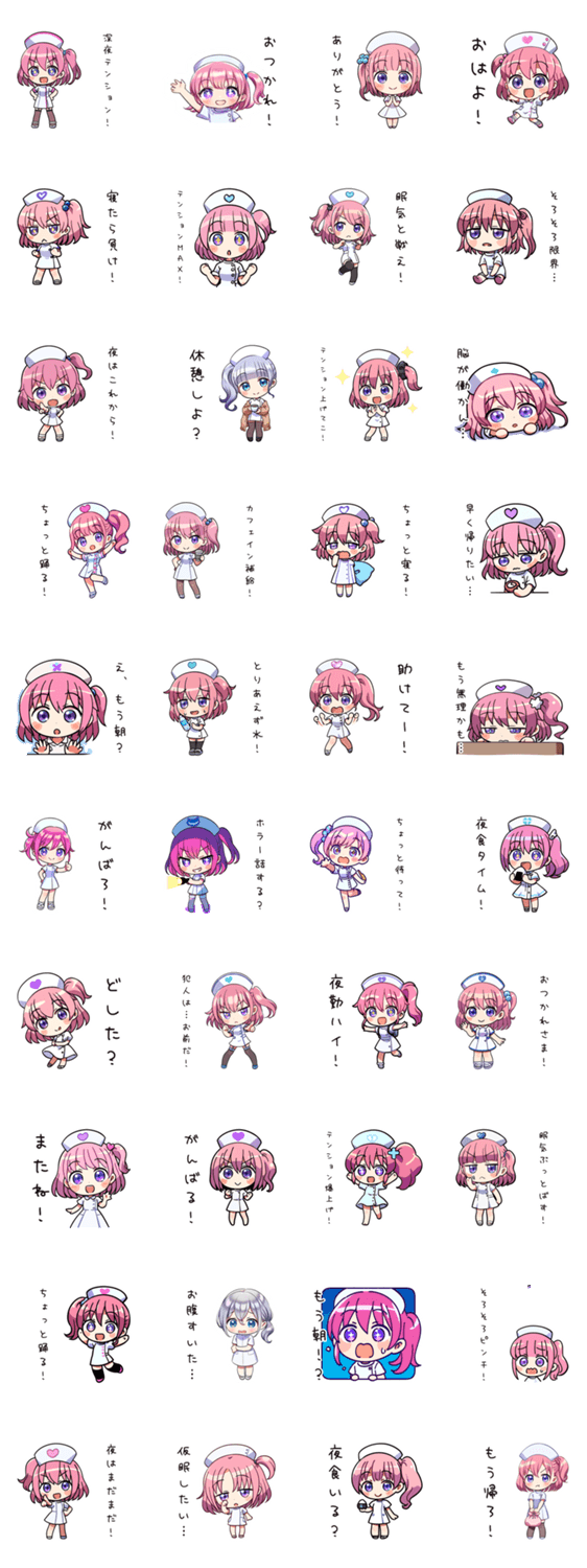 夜勤でテンション大爆発!眠気と疲れでハイになった看護師のスタンプです。深夜テンションのカオスな気持ちを、このスタンプで楽しく伝えよう!