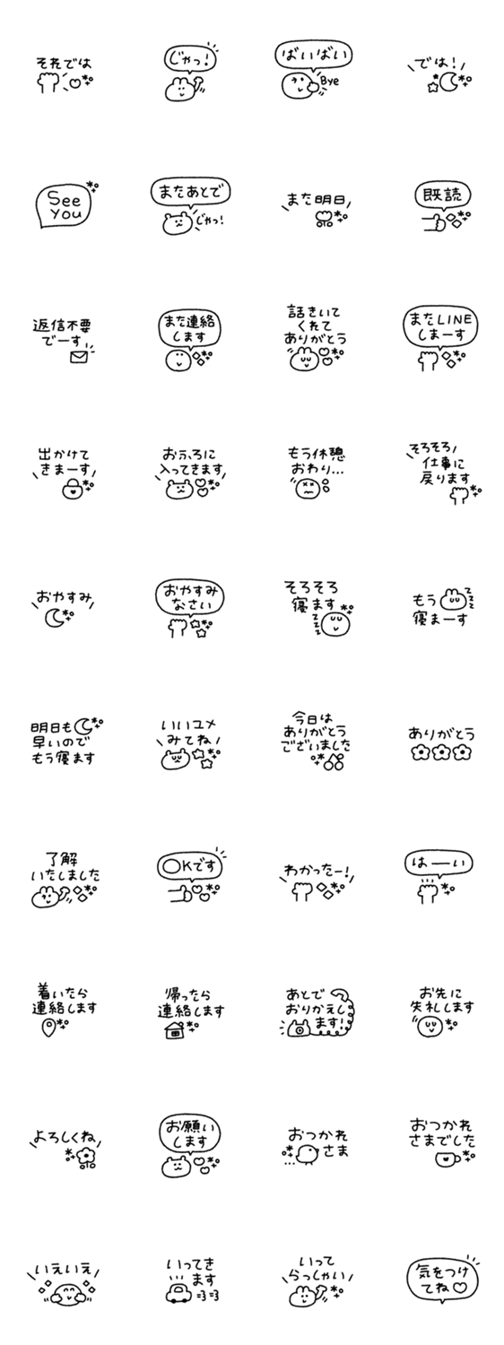 返信の最後にあると便利!ゆるい手書きのメッセージスタンプです! あいさつ/線画/うさぎ/くま/スマイル