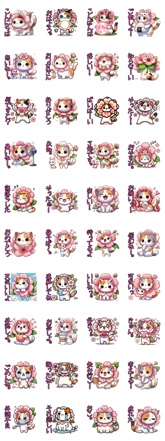 | スタンプ説明 | 花猫シリーズ第一弾の向日葵にゃんに続く弾二弾の桜にゃん。可愛すぎてごめんなさい♡ |