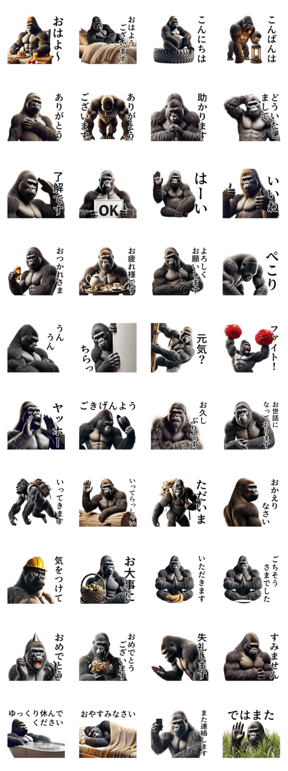 | スタンプ説明 | 敬語/家族/恋人/友達/先輩/上司/挨拶/ネタ/おもしろい/ふざける/ギャグ/毎日使える/よく使う言葉/シンプル/日常/カッコいい/使いやすい/面白い/お祝い/丁寧語/無難/連絡 |
