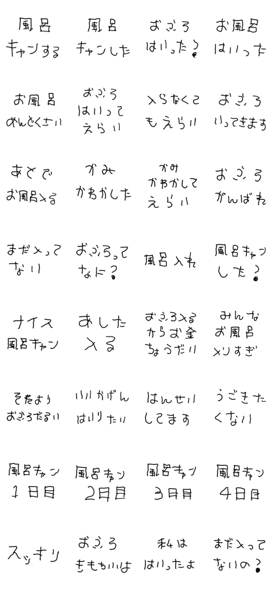 | スタンプ説明 | 風呂スキップ界隈、風呂キャン、マコモ湯、言い訳、面白い、ネタ |