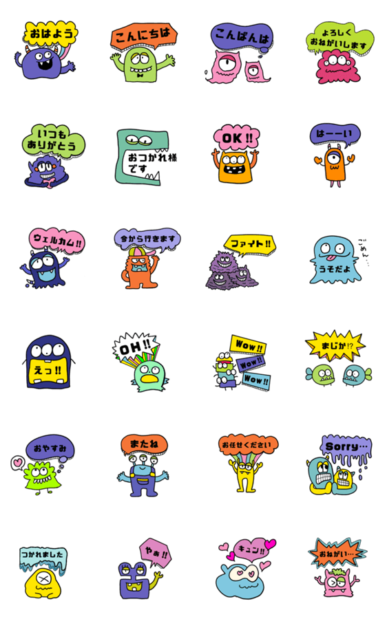| スタンプ説明 | カラフルなモンスター達のスタンプです!#かわいい#ポップ |