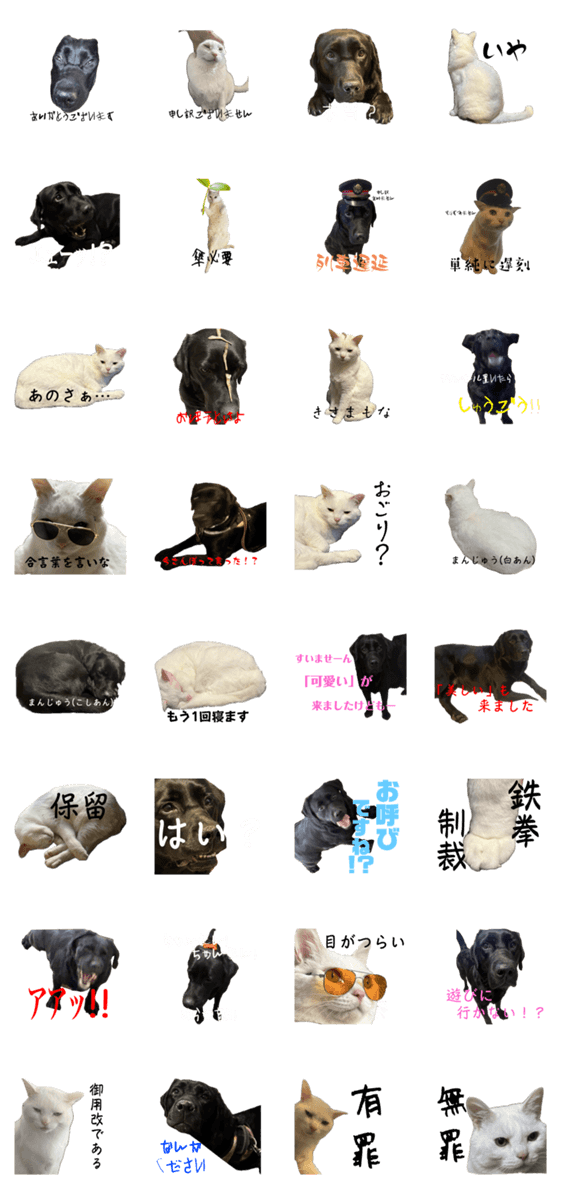 黒ラブもずくと白猫おもちのスタンプ。超可愛い。