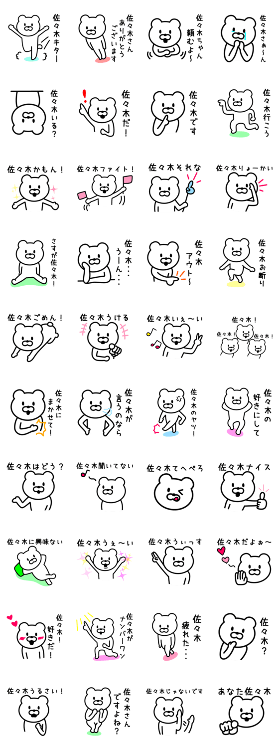 名字が佐々木(ささき)さんに便利なクマです。佐々木さん本人だけでなく名前が佐々木ではない人(佐藤、鈴木、高橋、田中さんなど)も使えるくまです。佐々木さん好きの方も。