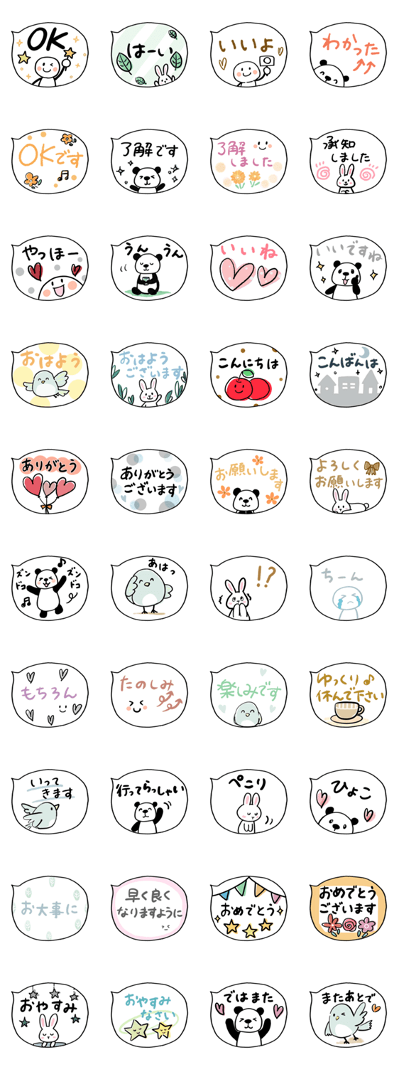 誰にでも使いやすい☆敬語と日常ことばのシンプルな手描き・吹き出しスタンプです♪ パンダ/とり/うさぎ/日常/かわいい/簡単/ゆるふわ/パステル/ほっこり/見やすい
