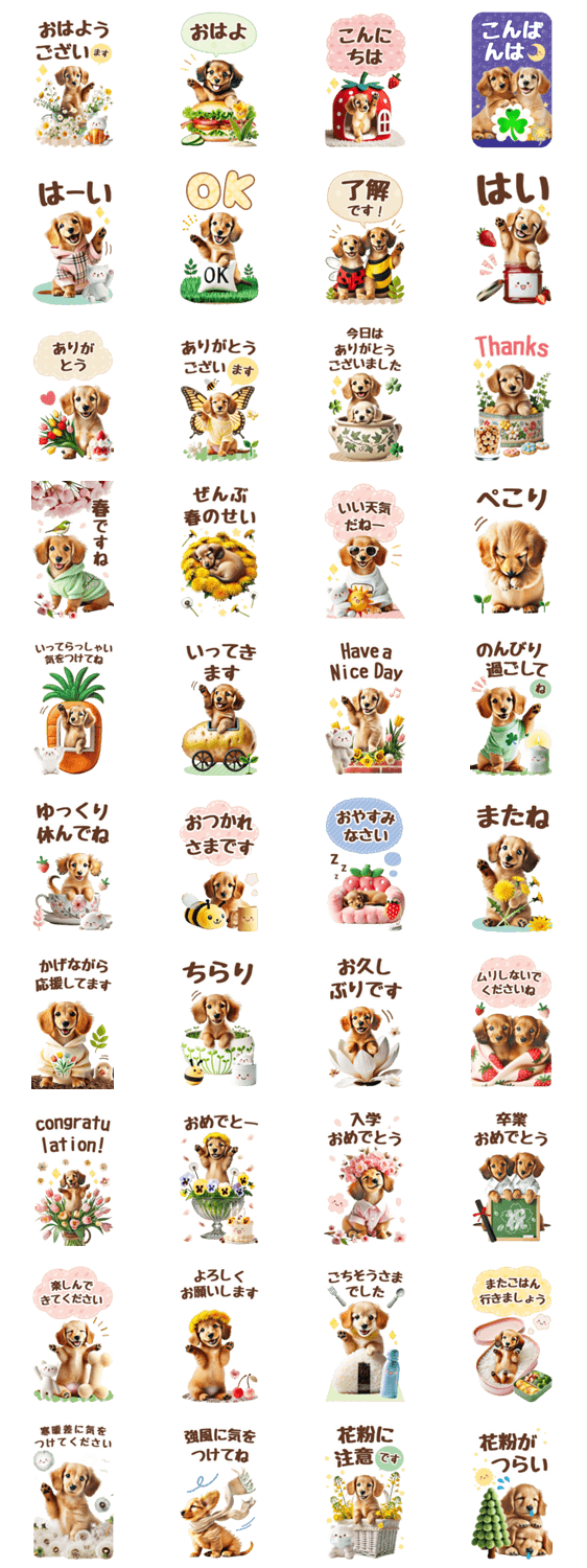 癒しダックスの春のあいさつ【BIG】 -LINEスタンプマニア