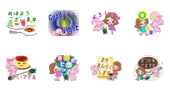 少女とうさぎとカメ、大の仲良しトリオです。 毎日使える便利なスタンプです。