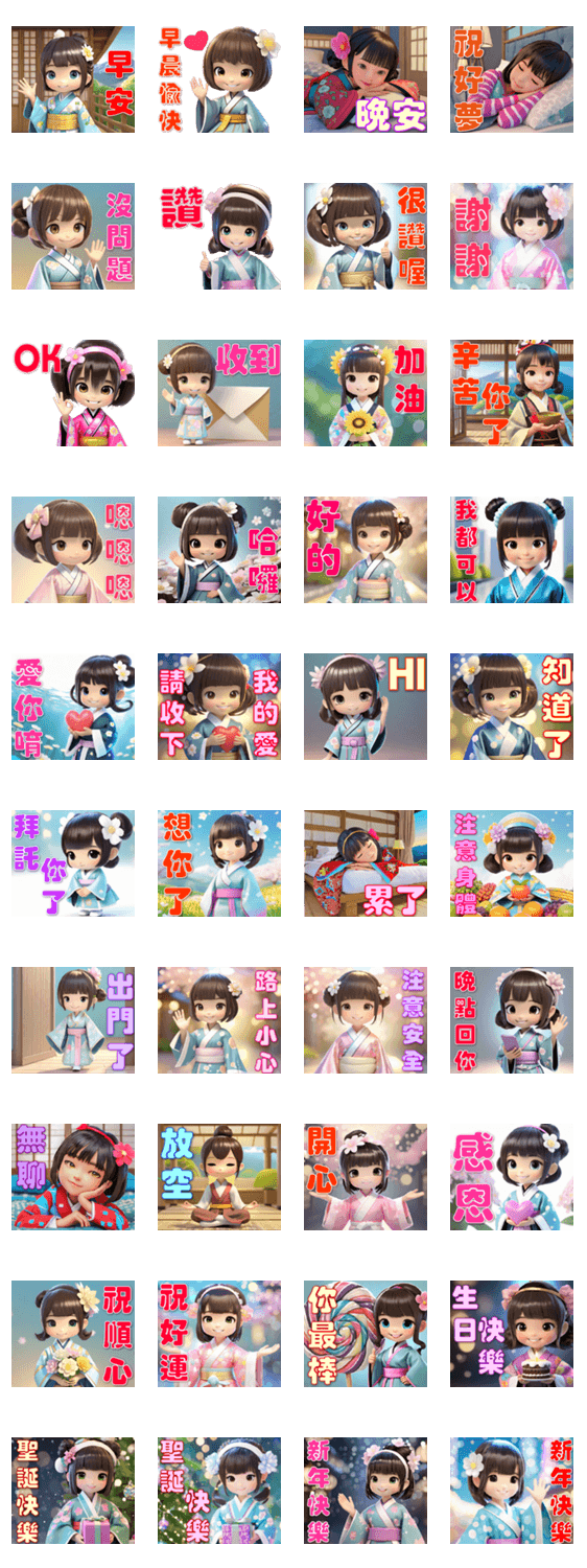 | スタンプ説明 | Kimono Cute Girl - Practical Greetings |