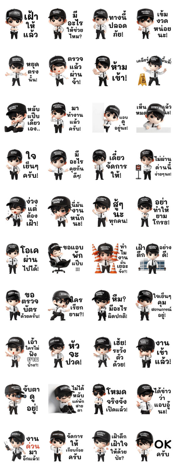 | スタンプ説明 | The cutest guard stickers! Cute, funny, and hilarious security guard stickers that can be used every day! With the cutest, sleepy, and playful guard characters. |