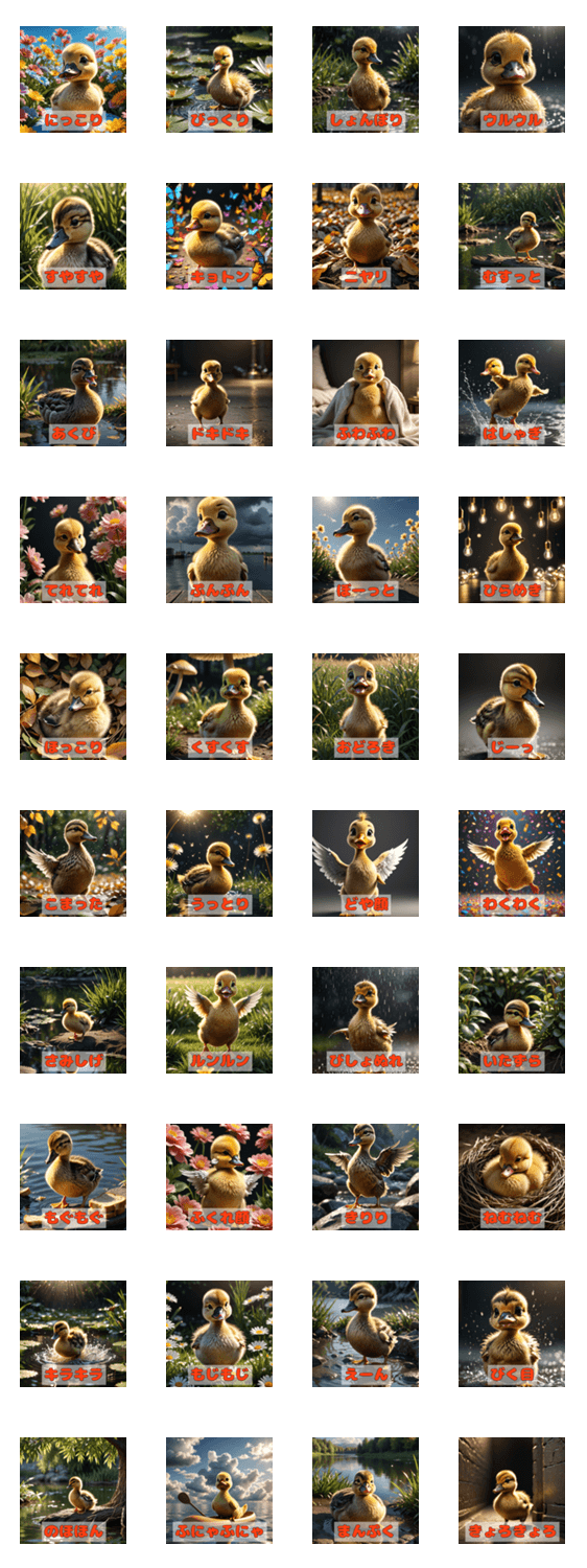 メルヘンチックなアヒルの子が、笑顔やあくび、びっくり顔など可愛い表情でトークを盛り上げる♪楽しくて癒されるスタンプで会話をもっと可愛く!
