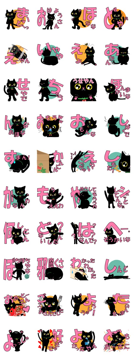 関西弁の黒猫ちゃんスタンプ。家族、友達、彼氏彼女との日常でぜひ使用してください。