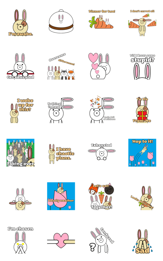 | スタンプ説明 | Enjoy these cute Bunnies! Send these Rabbits to add some sweet and spice to your chats! |