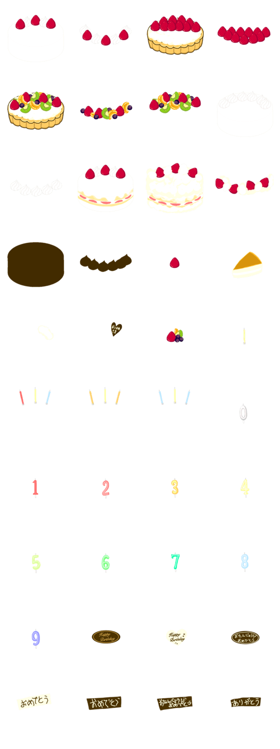 | スタンプ説明 | 大好きな人の特別な記念日にはオリジナルケーキを作ってお祝いを‼︎ アレンジ/バースデー/ショートケーキ/フルーツタルト/果物/手作り/チョコレートケーキ/苺/いちご |