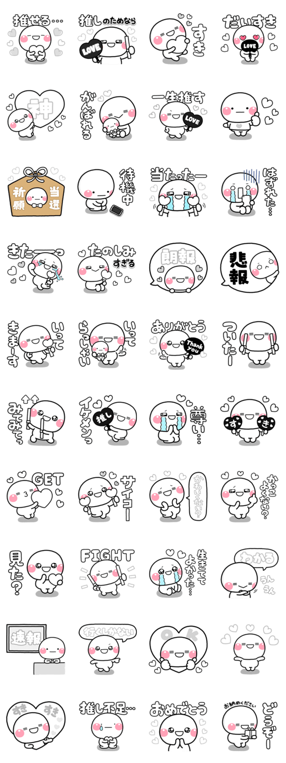 しろまるの推し活専用のスタンプです。推しや担当カラーがいる方にお勧めな内容を厳選したスタンプです。【作:いしいともこ】