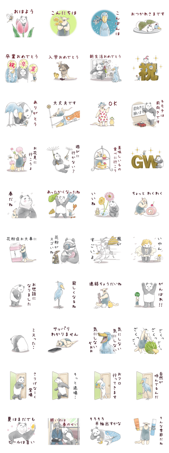 パンダとコアリクイの春を感じさせるスタンプです。