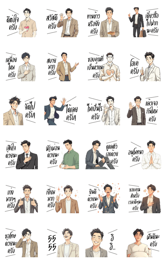 The collection features a kind, polite gentleman with warm expressions and cheerful gestures. Great for spreading positivity and friendliness in everyday chats.