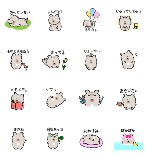 ゆるかわなボサボサ犬のペッパー。日常的にゆるっと使えるスタンプです。