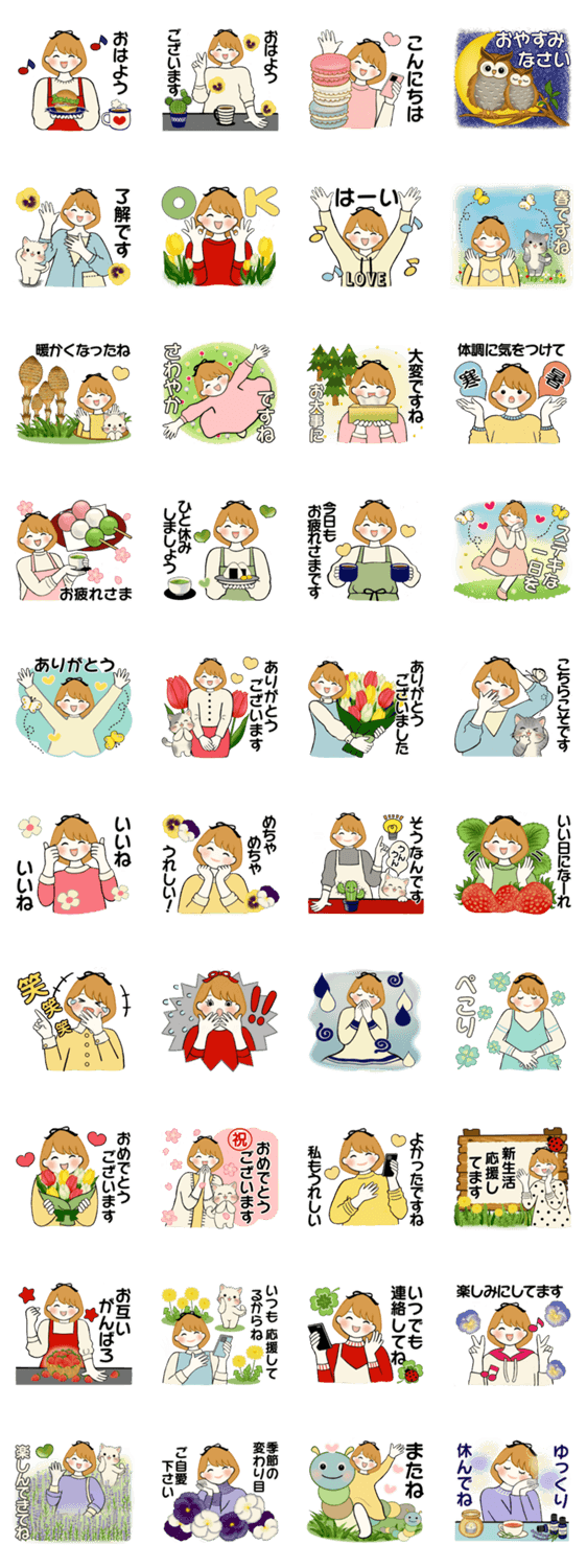 ほんわか春の日常スタンプの修正版です。使いやすい挨拶や優しいメッセージ。芽吹く春が元気を運びます。トークに春を咲かせて。