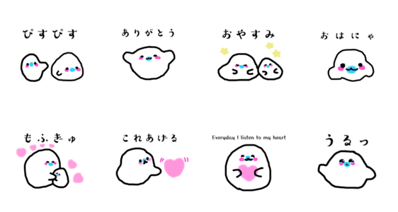 - 白ネコのあいうえお・・・ってるスタンプ