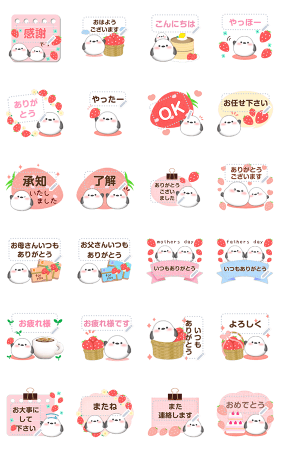 | スタンプ説明 | 【シマエナガ】ほんわか/苺/春/好きな文字を入力/メッセージスタンプ/挨拶に使えるスタンプ/敬語/母の日/父の日/ご結婚おめでとうございます/お大事に/了解/mamama-chin 現在この商品は一部のスマートフォン版LINE 10.3.0以上のトークルームでのみ使用できます。動作環境の最新情報はヘルプをご確認ください。 |