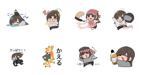 しょうが ちゃん スタンプ 女子 バイク へべれけ
