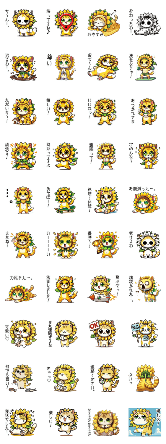 | スタンプ説明 | 人気の‼️花猫シリーズ向日葵にゃんの第2弾です❗️ |