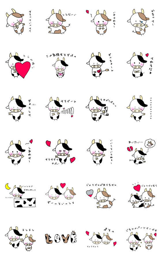 顔が丸い牛さんのスタンプ(カップル編) -LINEスタンプマニア