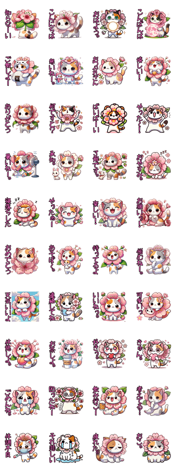 | スタンプ説明 | 花猫シリーズ第一弾の向日葵にゃんに続く弾二弾の桜にゃん。可愛すぎてごめんなさい♡ |