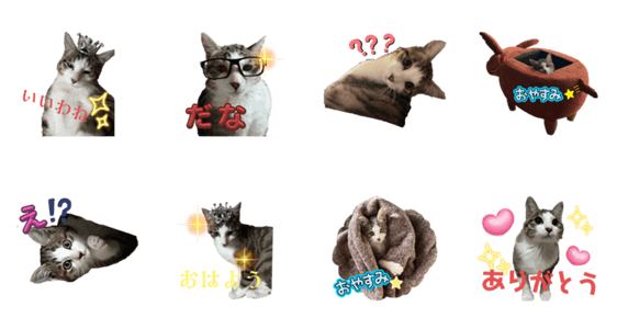 白ネコのあいうえお・・・ってるスタンプ