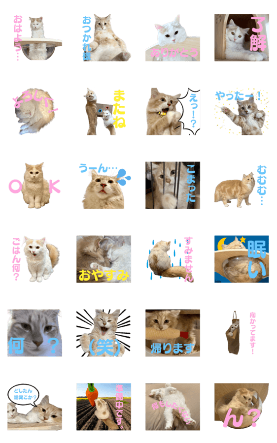 可愛いサイベリアン猫のLINEスタンプ!日常会話にぴったりなフレーズを詰め込みました。猫好きさん必見!