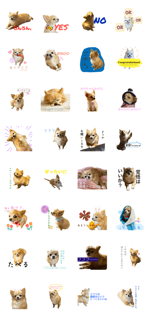 Chihuahua(チフゥアフゥア)のスタンプ。いろんな表情のChihuahua(チフゥアフゥア)。使いづらいChihuahua(チフゥアフゥア)。Chihuahua(チフゥアフゥア)最高。最高の犬。
