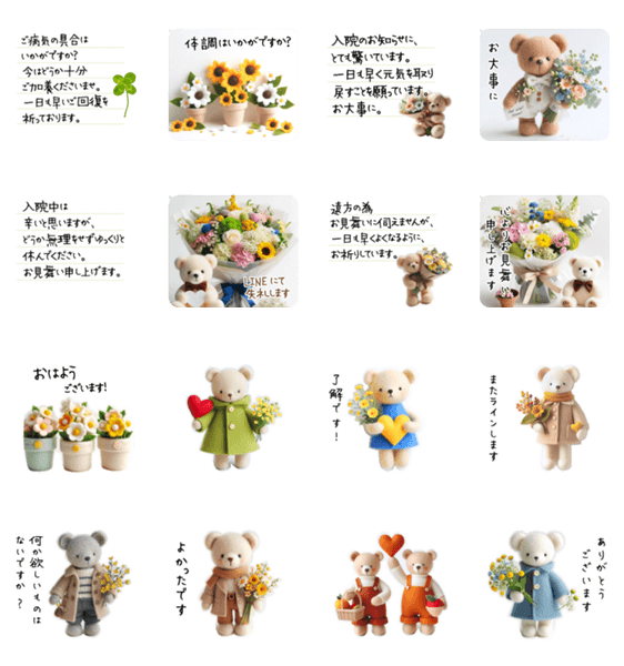 熊&花 病気見舞い/体調を気遣う温かい言葉 -LINEスタンプマニア