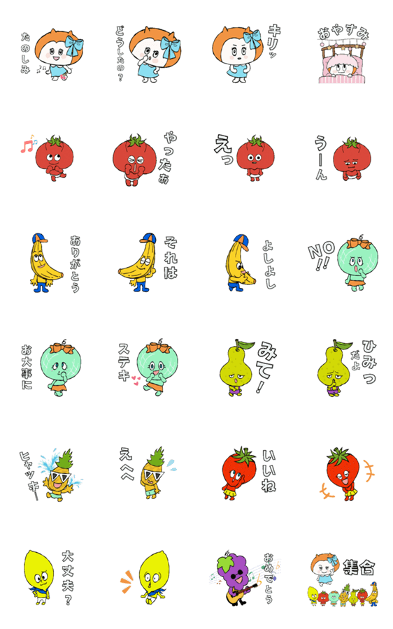 絵本『ヤヂコとフルーツのなかまたち-きえたにじのくだもの-』[公式]。感情豊かなキャラクターがLINEメッセージを盛り上げます〜クスッと笑える!?愛らしいスタンプです。