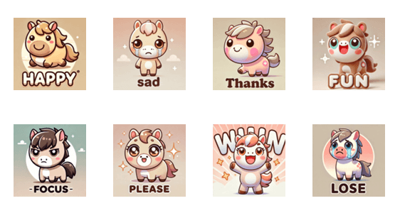 かわいいお馬さんのさまざまな表情を楽しめるLINEスタンプです