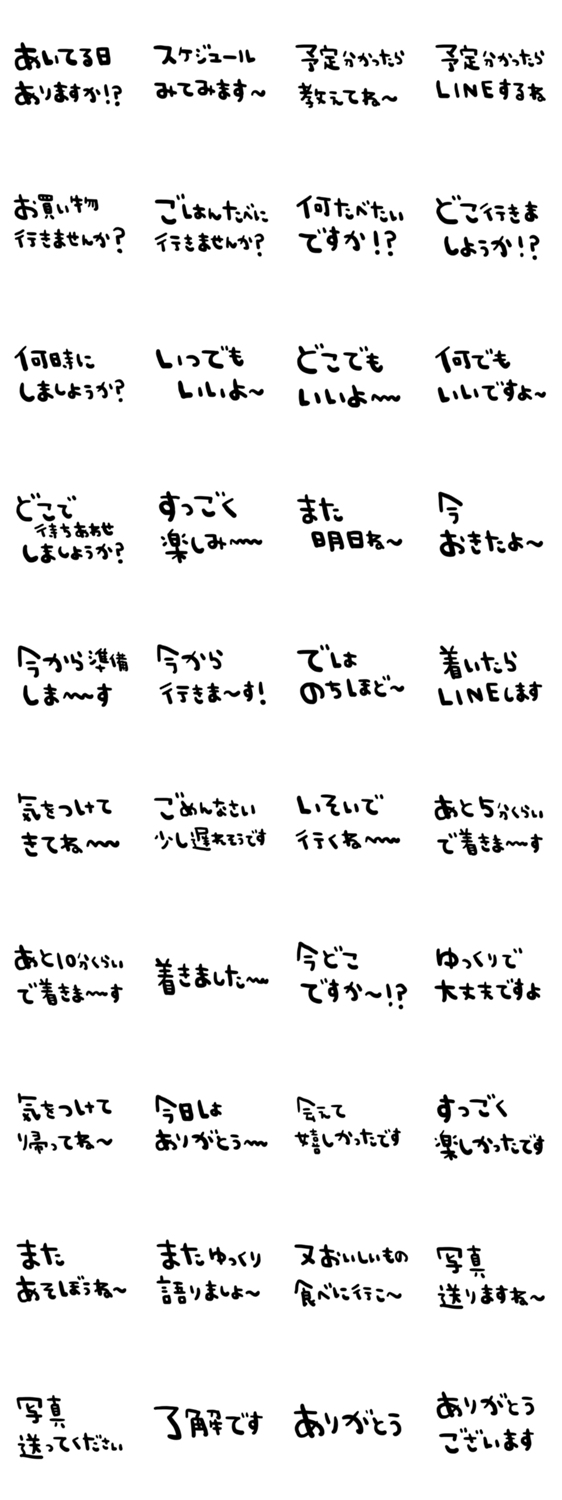 シンプルな日常会話スタンプです。お気遣いスタンプ 遊ぶ約束 友達と会う約束