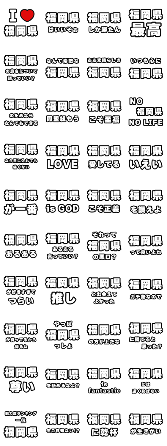 I LOVE 福岡県! 福岡県の愛なら誰にも負けないあなたへ送るシンプルなスタンプ。 ネタ/都道府県/ラブ/シュール/おもしろ/地名/地元愛/テキスト/文字スタンプ/自己紹介