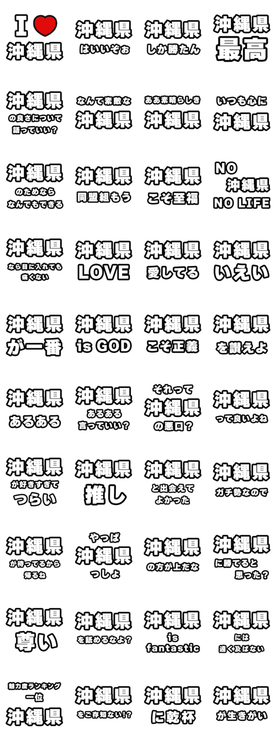 I LOVE 沖縄県! 沖縄県の愛なら誰にも負けないあなたへ送るシンプルなスタンプ。 ネタ/都道府県/ラブ/シュール/おもしろ/地名/地元愛/テキスト/文字スタンプ/自己紹介