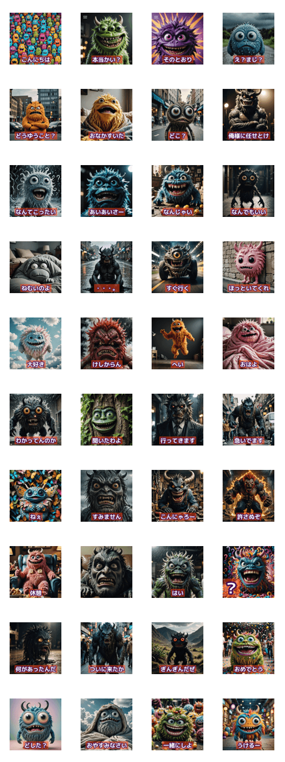 愛嬌たっぷりのモンスターたちが、あなたの気持ちを全力で表現!「ドヤ」「ぷんぷん」「ぴえん」など、感情豊かなスタンプでトークをもっと楽しく♪
