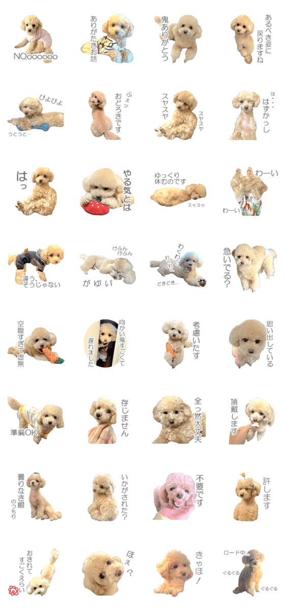 かわいいトイプードルウニちゃんのスタンプ第2弾! 日常的に使いやすいものに加え、シュールなパターンもご用意。 お友達から親しい職場の上司にも使えること間違いなし!