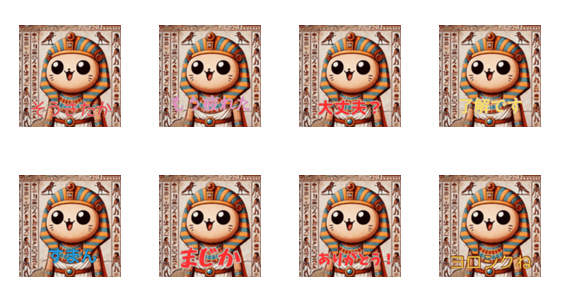 Express your emotions with these adorable ancient Egyptian-style stickers! From joy to frustration, these cute pharaoh pals bring history and fun to your chats.
