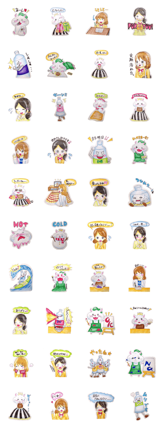 白ネコのあいうえお・・・ってるスタンプ