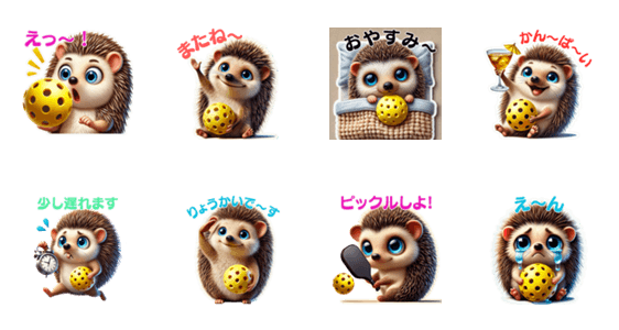 可愛いハリネズミとピックルボールのスタンプです! ピックル仲間に可愛いスタンプを送ろう♡