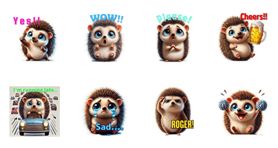 可愛いハリネズミのスタンプ。いろいろな表情のスタンプです。
